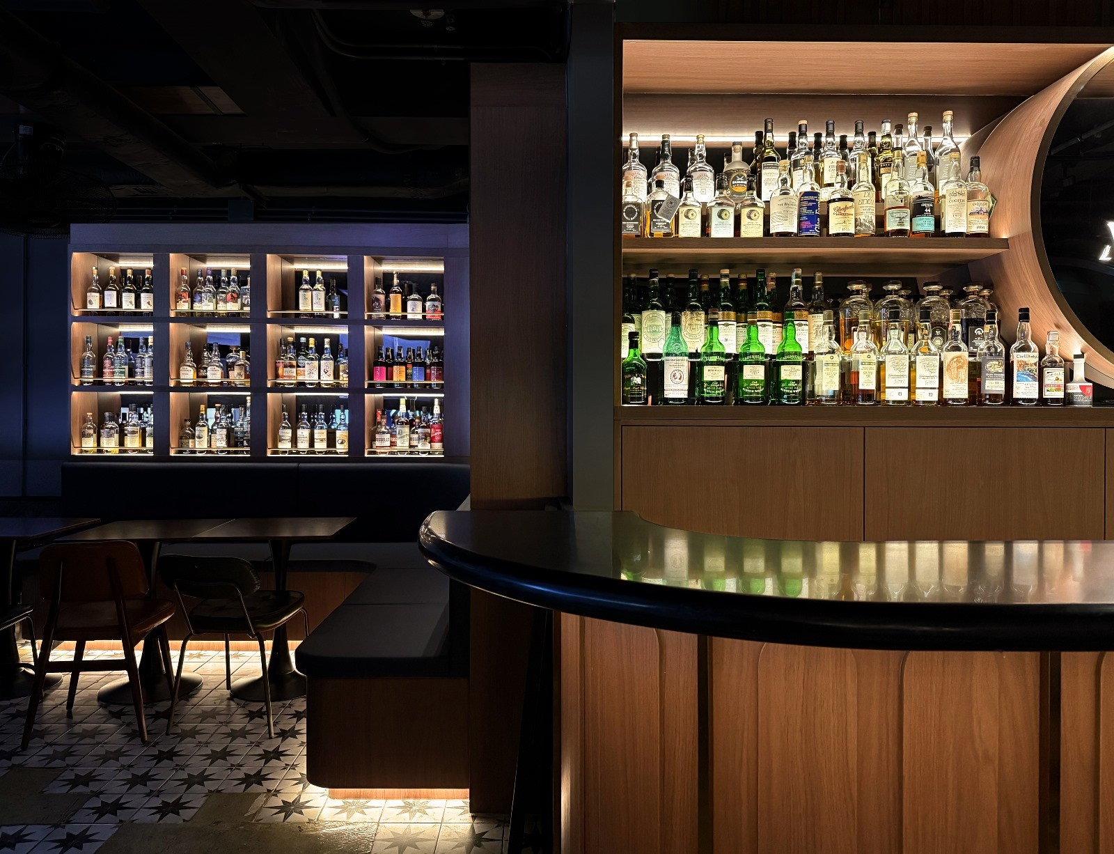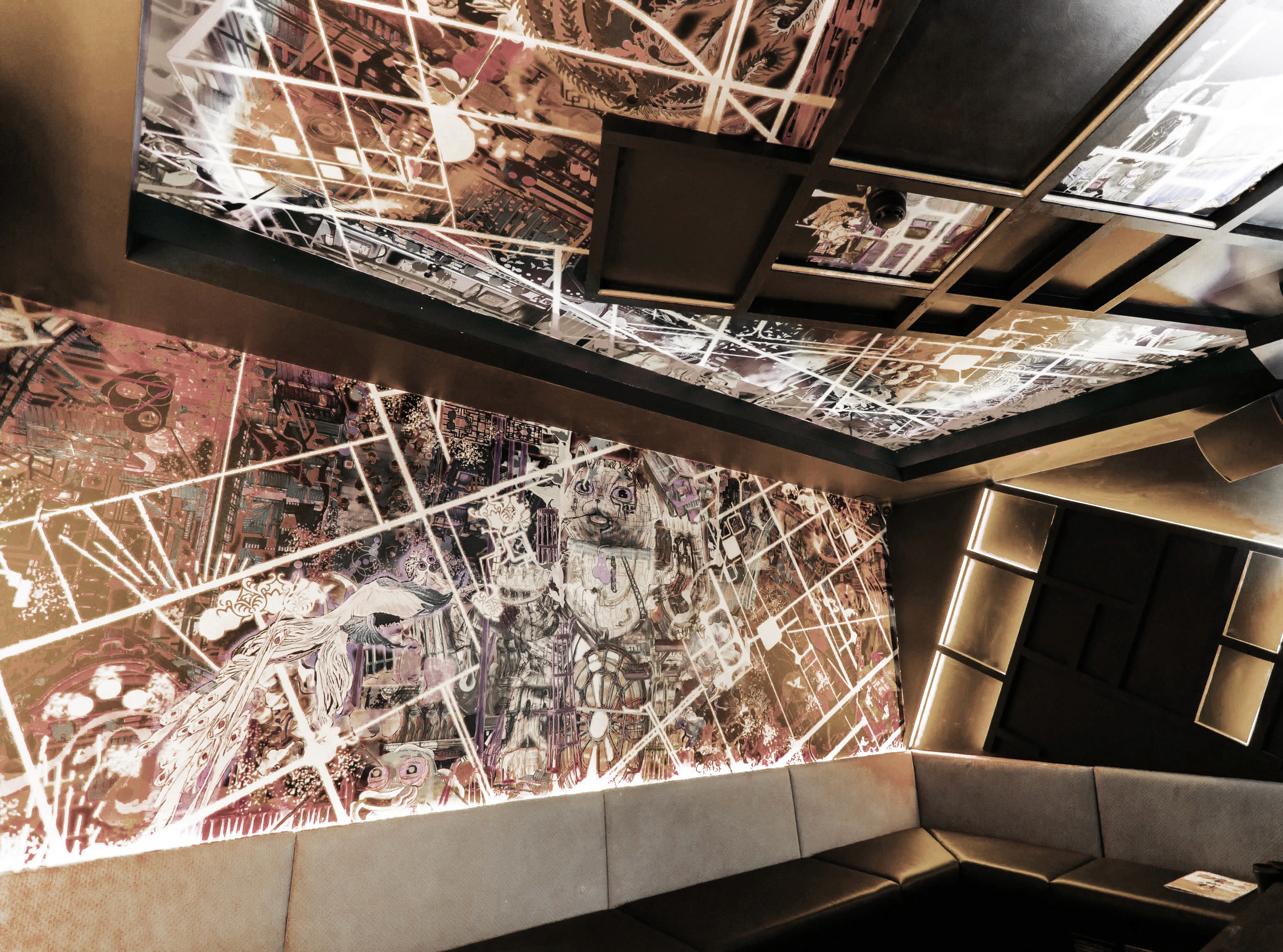 tower lobby, gate design, 3-storey flying membership club interior design, featuring a flight simulation room and feature bar lounge with aviation curved windows.
